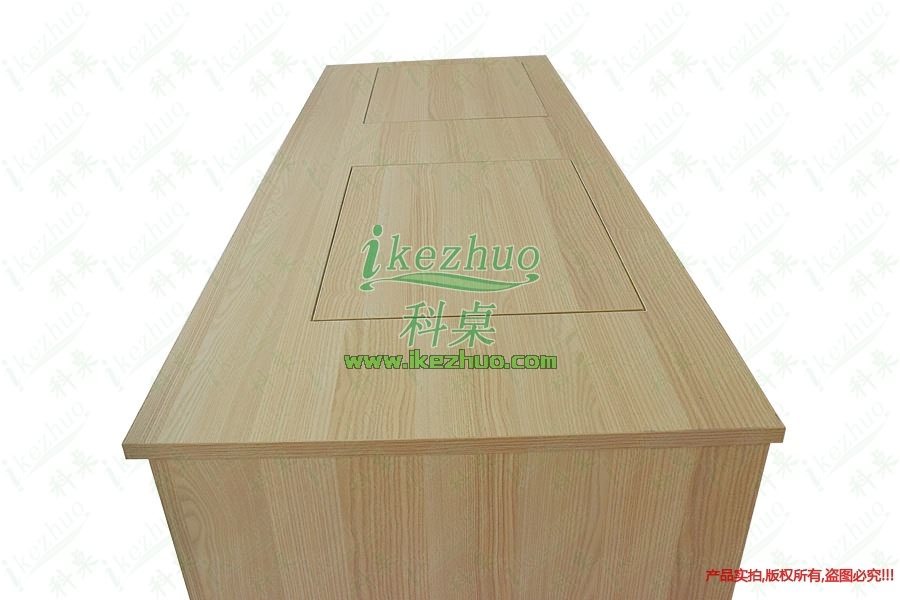 4、當(dāng)不使用顯示器時,可手動按下顯示器翻蓋面板至桌面平整,顯示器自動鎖住隱藏在桌子內(nèi)部,此時整個桌面成一個平面狀態(tài)